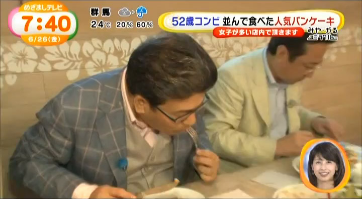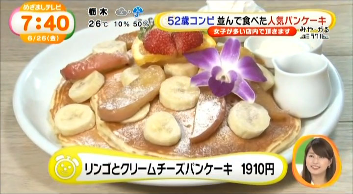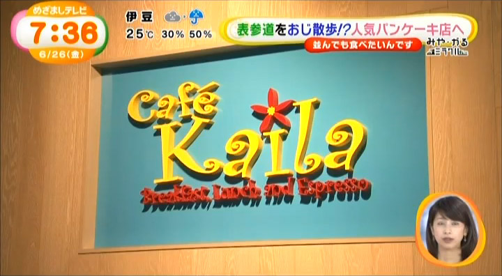 2015年6月26日(金)5:25~ フジテレビ「めざましテレビ 」の「みや・かる ミラクル」のコーナーにて、三宅キャスターと軽部アナウンサーにカフェ・カイラのパンケーキをご紹介&ご賞味いただきました!